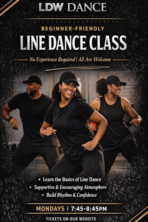 A high-energy, exciting line dance experience for beginners and seasoned dancers alike. Each class blends rhythm, precision, and purpose-featuring a mix of classic favorites, trending line dances, and the trail ride grooves. Burn calories, boost your fitness, meet new people, and hit over 5,000 steps per session – all while having a great time!